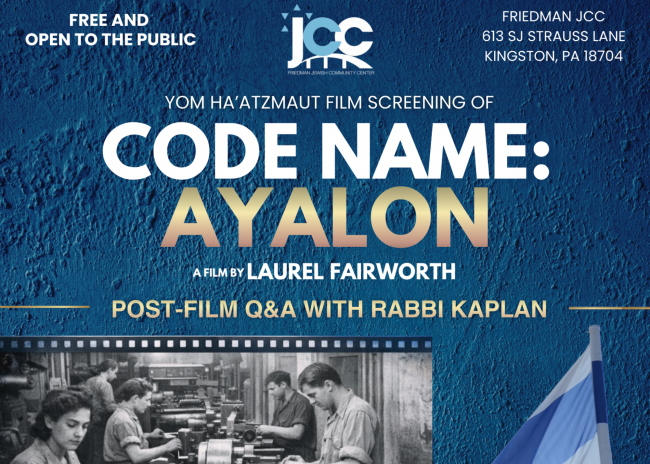 Tuesday, April 21 at 6 PM Join us for a powerful evening as we screen Code Name: Ayalon, an extraordinary documentary that tells the true story of 45 teenagers who lived and worked in complete secrecy, operating an underground bullet factory hidden beneath a kibbutz laundry in the years leading up to Israel’s War of…