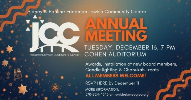 2025 Thanks For Giving Day 5K Run / Walk Ben August Memorial sponsored by: Friedman Jewish Community Center and NEPA Racing Thanksgiving Day, November 27, 2025 – Time: 9:00 a.m.LOCATION: Start and finish at The Sidney And Pauline Friedman Jewish Community Center, 613 S J Strauss Lane, Kingston, Pa 18704 INFO: Register HERE: https://my.raceresult.com/351915/registration This event…